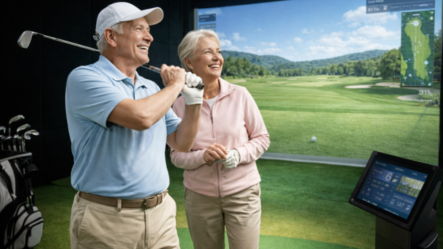 スイングが形になってきたら、シミュレーターを使って実際のコースを想定したレッスンに移行します。「ティーグラウンドのどこに立てばいいか」「グリーンの読み方」といった実戦的な知識も、室内でシミュレーションできます。これにより、初めてのラウンドも過度に緊張することなく、スマートな立ち振る舞いで楽しむことができます。